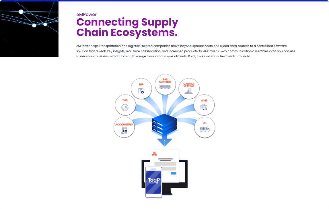 First Mile to Last Mile: The TaaP© App provides cost-effective access to shippers and freight providers with real-time GPS tracking. Connect to the eMPower load board for direct access to carriers and the best rates.